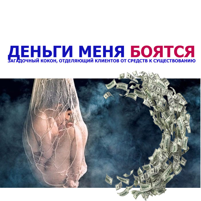 Много раз бизнесмены рассказывают, как приходилось вытаскивать себя за шкирку из тяжелых эмоциональных моментов, из финансовых крахов. Падение самооценки и достоинства – это самое страшное, что переживали люди. Во время работы многие клиенты описывают метафору. Это некий кокон, за которым скапливались летящие банкноты, замирая на расстоянии, не достигая цели.