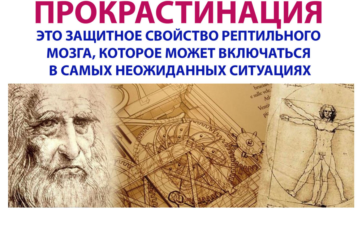 Прокрастинация это защитный инстинкт рептильного мозга в незнакомой ситуации. Вроде и понятно, что нужно делать: остановись, опасно, разберись, – но почему-то самому бывает трудно увидеть все детали процесса.